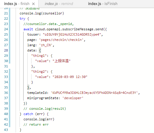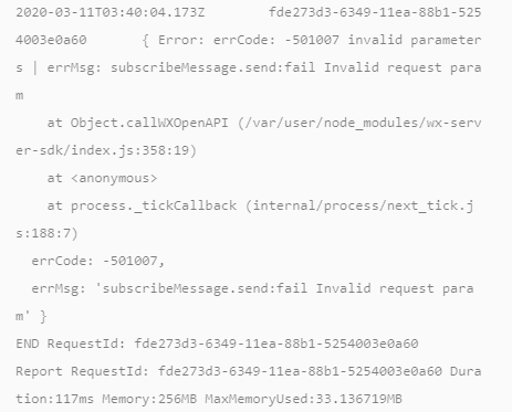 新建云函数,调用调用发送订阅消息接口。云端测试报错,本地调试可行。