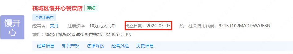 企业名称:桃城区馒开心餐饮店
