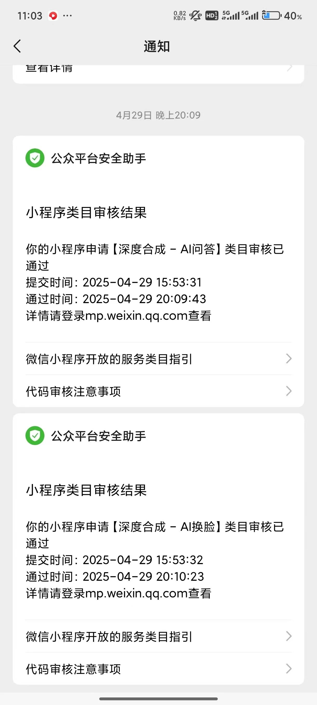 已经申请通过了三个小程序的深度合成类目,需要帮忙的联系: amyer6699 当天处理出结果