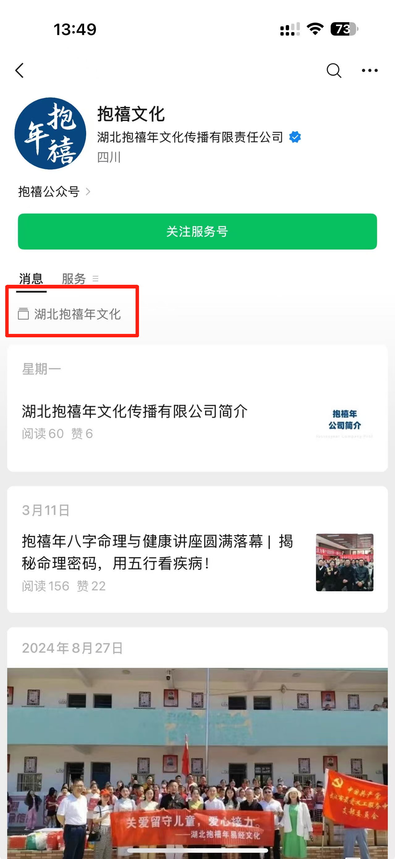 点下右上角人像图标进入服务号主页,查看到是有展示你设置的合集哈。