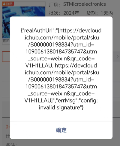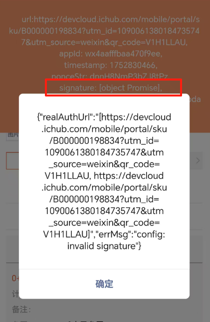 商品页url获取签名也能正常获取,但是每次进入这个商品页就是会报:config:invalid signature