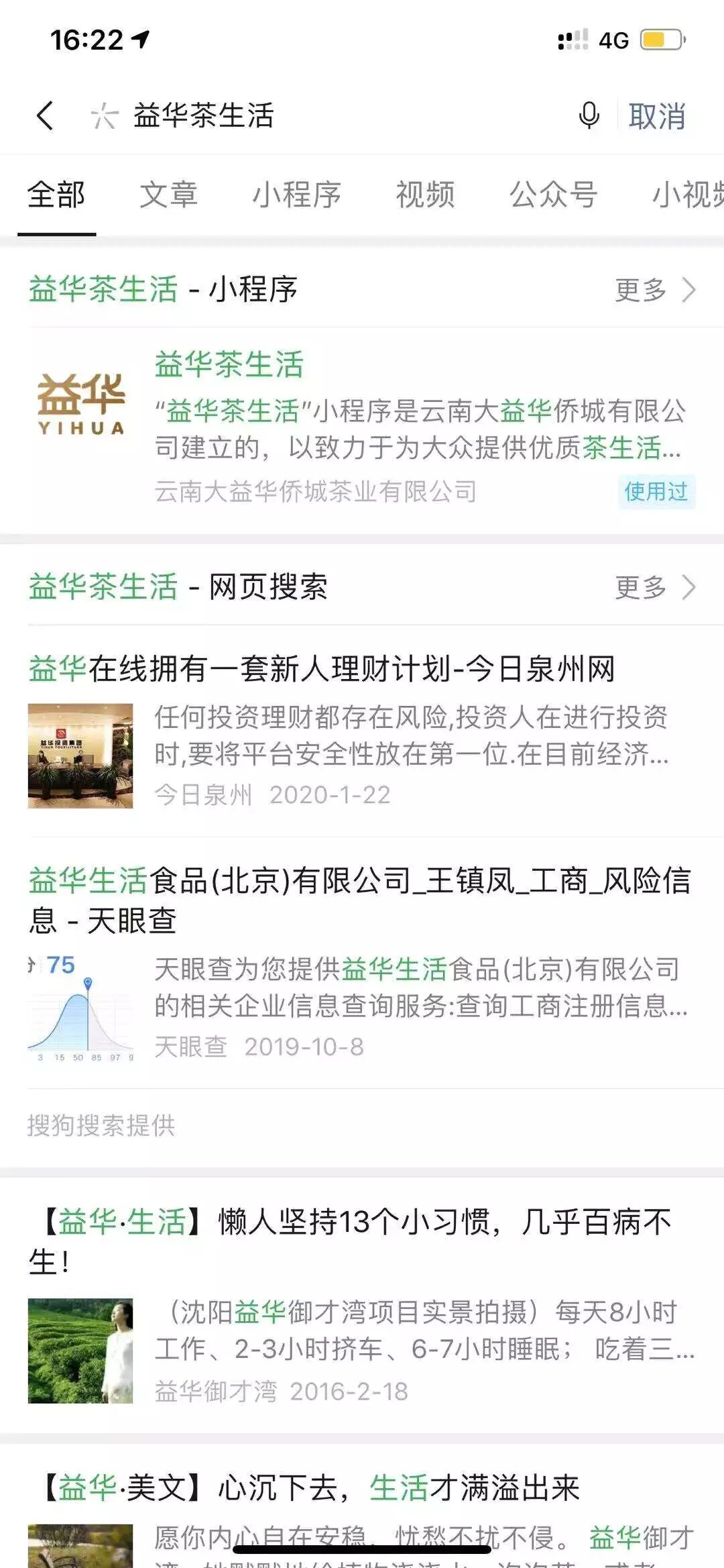 请问怎么能都被搜到啊 我们小程序名字叫 益华茶生活 appid:wx2934e372ede12f5e