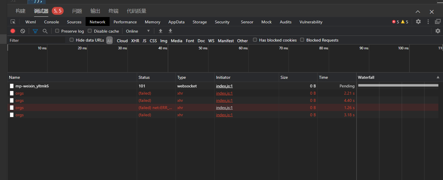 - 客户端配置已检查:微信开发者工具中已正确设置为“直连网络”并勾选了“不校验合法域名”。
