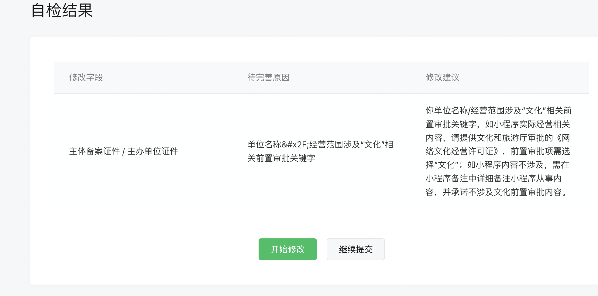 2)流程中自检结果问题,若当前已根据要求填写不涉及情况说明备注,请点击【继续提交】即可