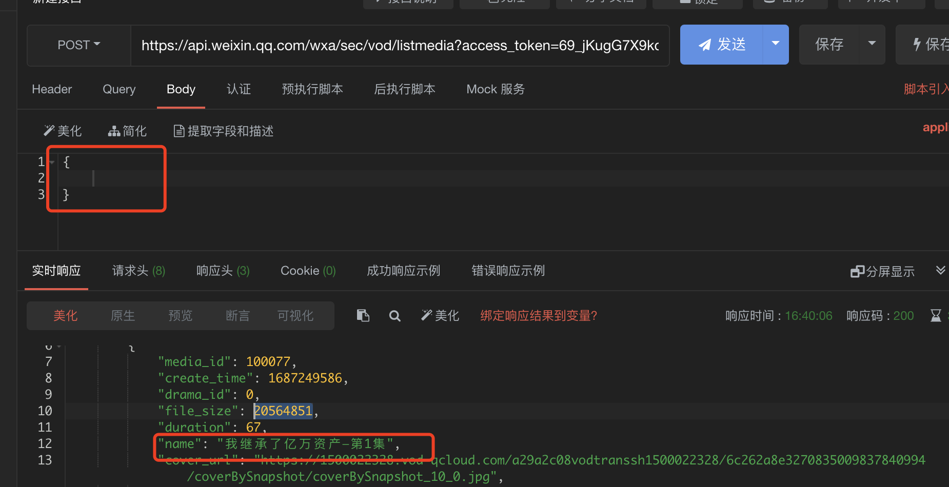 图二我加了媒资文件名,模糊匹配,没有返回列表