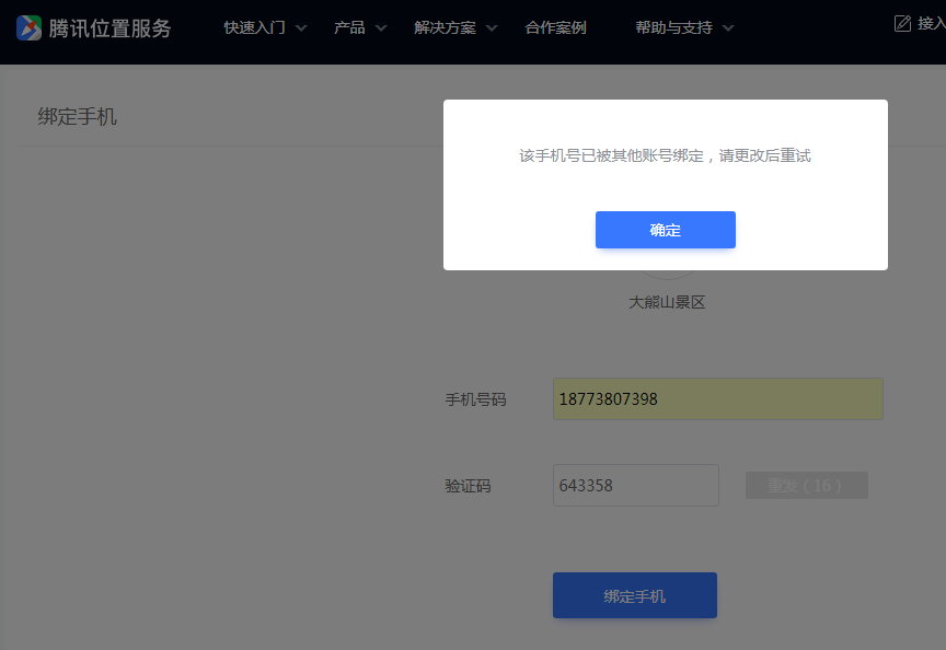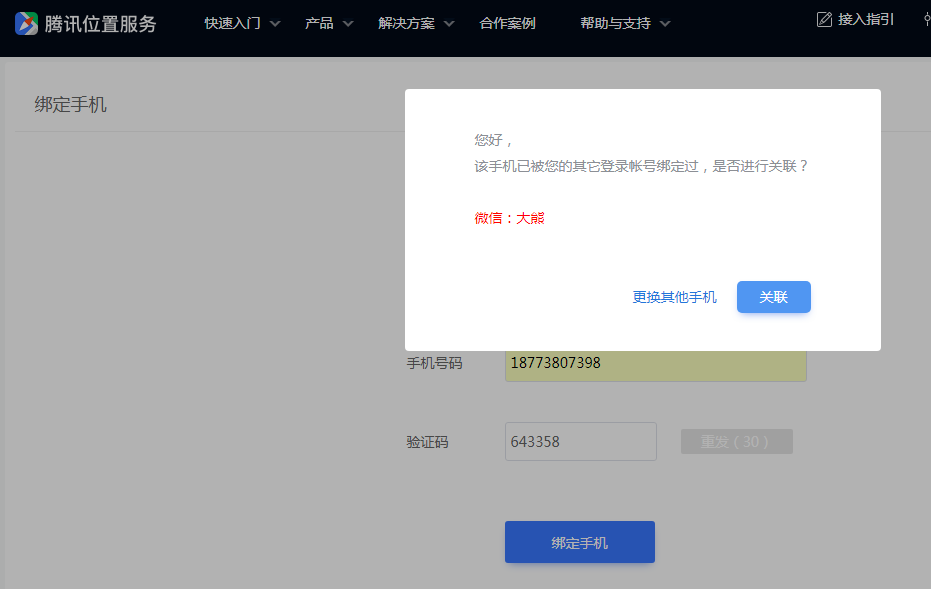 我之前用手机号注册了腾讯位置服务,现在要用小程序绑定之前的帐号,绑定不了,说我的手机号绑定了其它帐号。