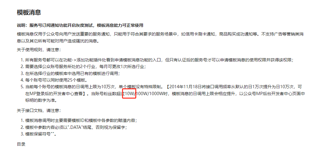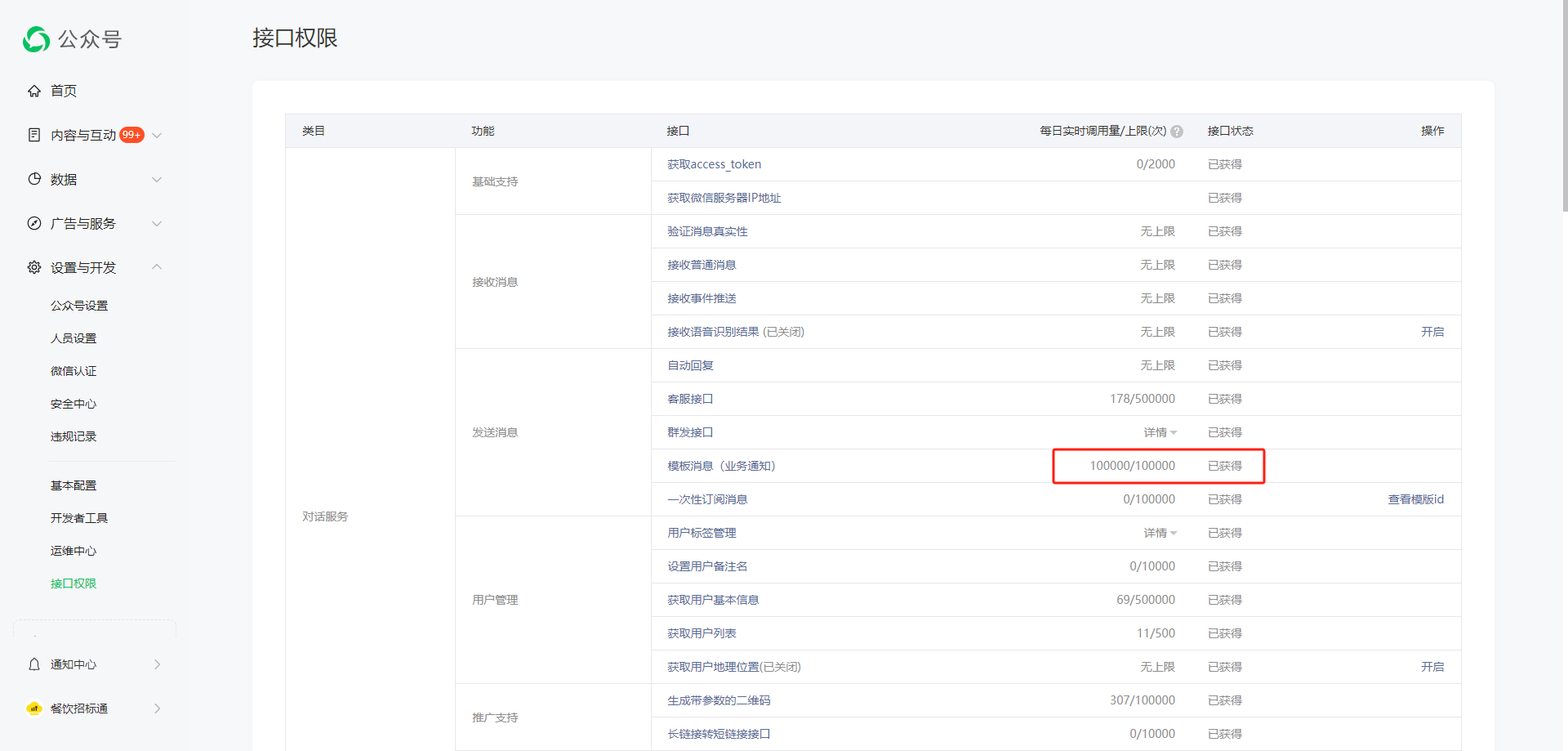 粉丝数已经达到10万,对应 【模板消息(业务通知)】权限未对应提升额度