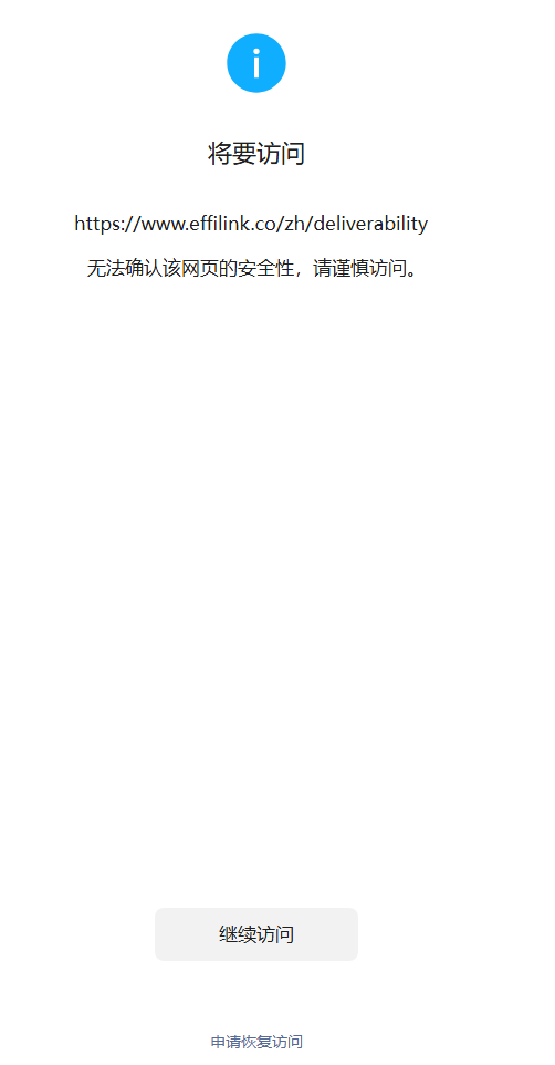 您好,域名https://www.effilink.co/已经备案通过,浏览器访问正常,我是网站开发者,访问时间如图2026/01/16,微信访问网站出现“无法确认该网页的安全性,请谨慎访问。”的风险提示问题,经检查网页里没有不安全的内容,请核实后帮忙解除拦截,谢谢!