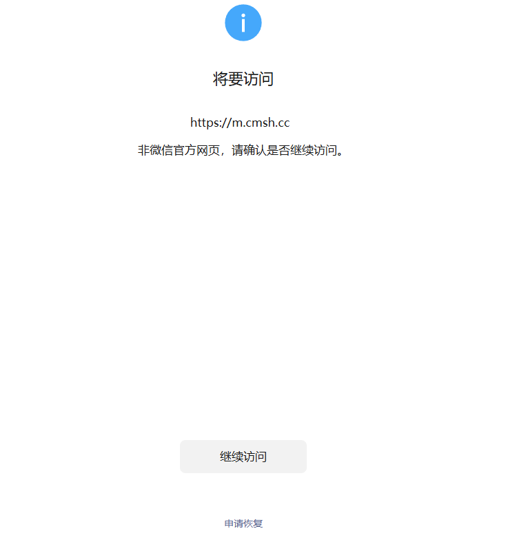 微信访问我司h5网页"m.cmsh.cc"时提示”非微信官方网页,请确认是否继续访问”还请解决!