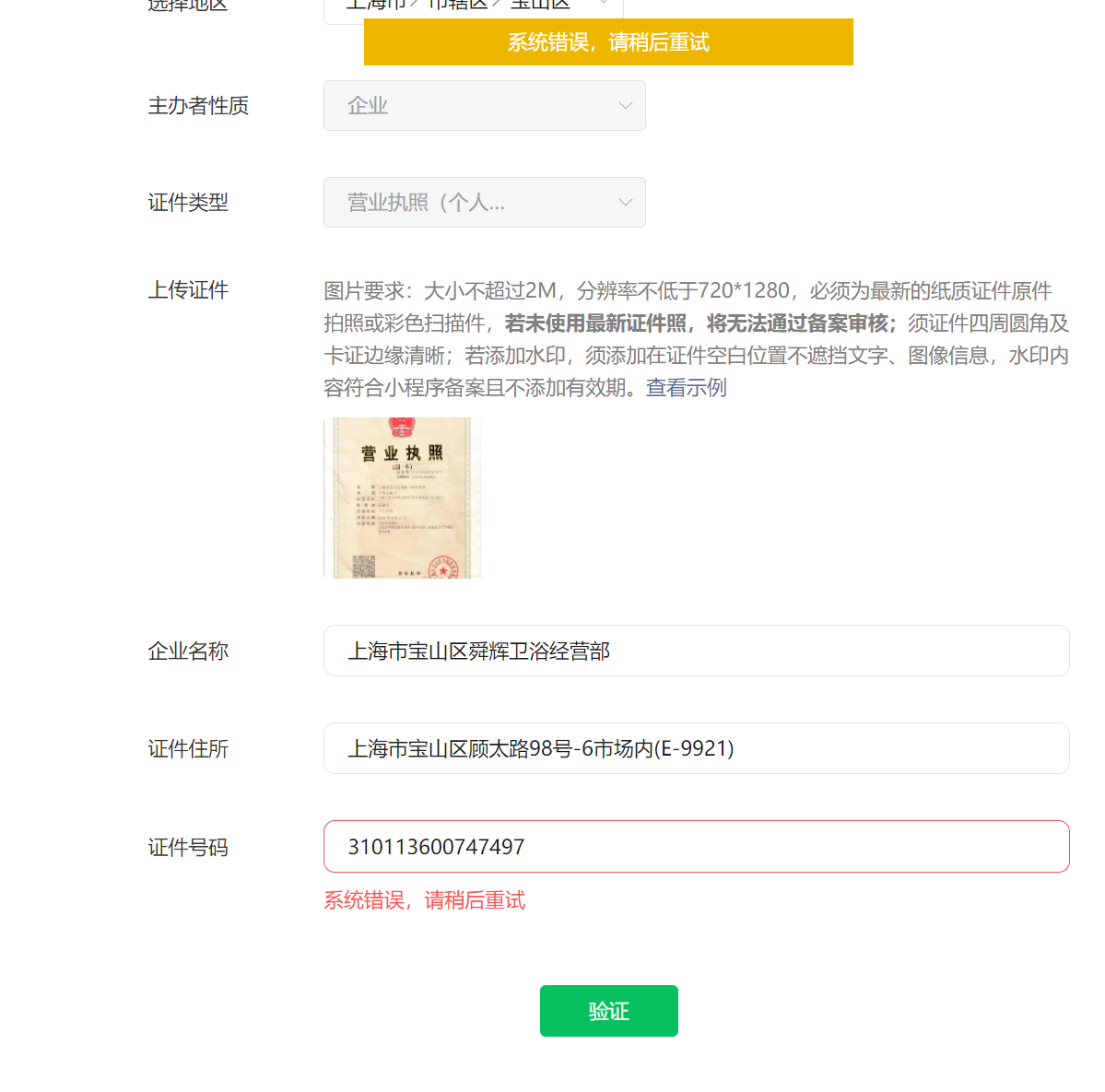 回答一下问题原因,老板给了旧的营业执照,我顶啊。换新的解决了