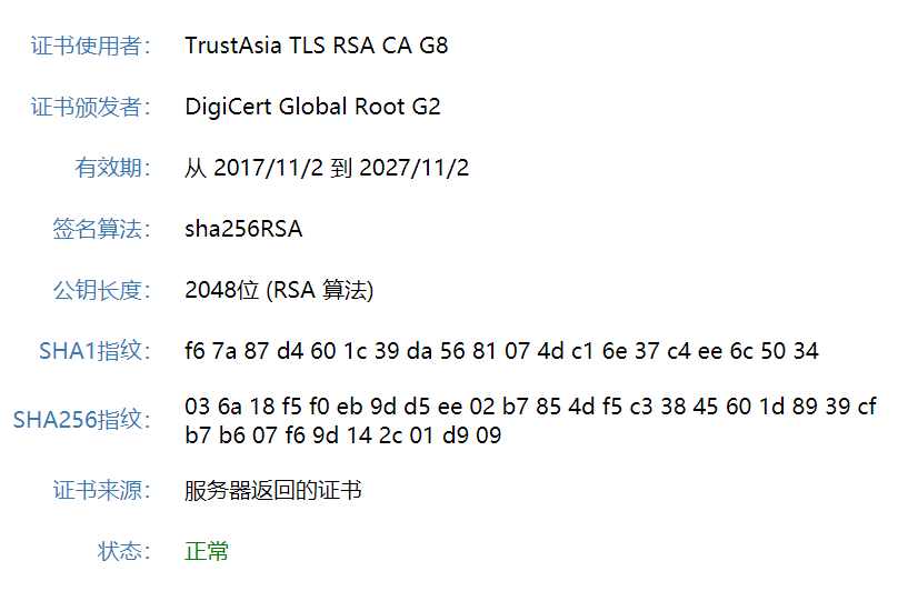 然后检测了证书,没有任何缺失。我们用的是腾讯云的服务器,证书也是腾讯云提供的。