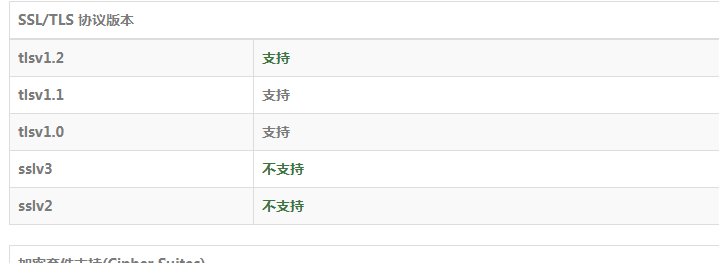测试时用了不少机型,有新的有旧的,苹果从5开始都没有遇到什么问题。问题主要出现在安卓机型,新机型基本都没有什么问题,一部sony z2 报了这个ssl hand shake error,一部红米note1 同样报了错了,遂按照一些帖子回复检测了tls支持情况,如图所示1.2及以下没有问题。