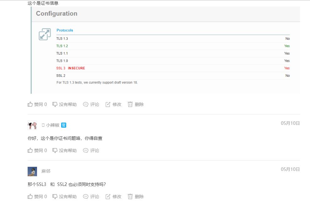 问题依然存在,官方避而不答。证书检测的数据我上面都有,不存在任何问题,用的还是他们腾讯云的服务器,然而???