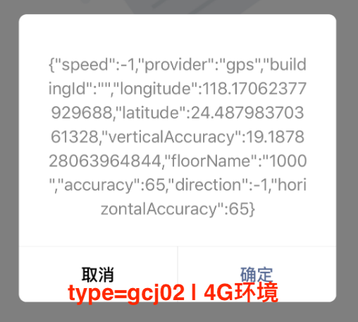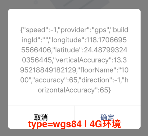 获取到的两个坐标分别是 (118.170624, 24.487984) 和 (118.170670, 24.487993) ,这两个坐标相差很小基本可以认为是同一个坐标系下坐标。而且在两次实验期间,我是删掉小程序重新进入,并全程使用4G网络,应该不存在小程序的缓存和WIFI定位偏差问题。