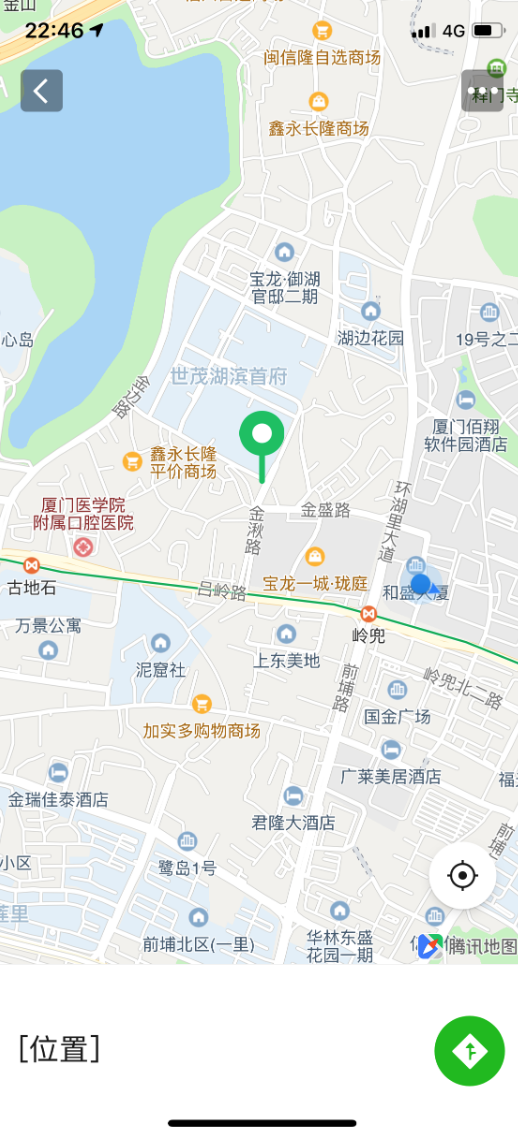 接着,我用坐标转换工具(https://tool.lu/coordinate/)将 type="gcj02" 获取的坐标系 (118.170624, 24.487984) 当成”wgs84“转换成"gcj02"坐标系,结果为:(118.17546965034533, 24.48524971152184)。再将这个坐标值作为参数传给 wx.openLocation({ latitude: 24.48524971152184, longitude: 118.17546965034533 }),结果地图展示的坐标刚好是我真实的位置,如图5所示:
