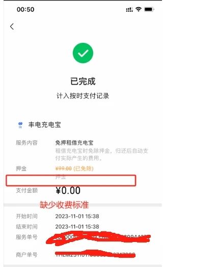 微信免押验收的时候 返回消息说 已完成 支付分订单页截图中缺少收费标准