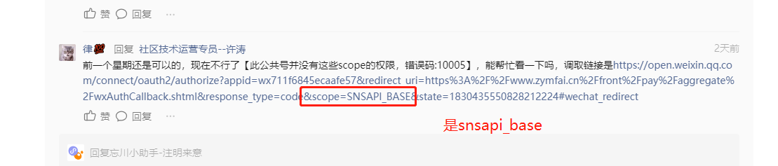 一直报:此公众号没有这些scope的权限,错误码:10005;麻烦管理员看看