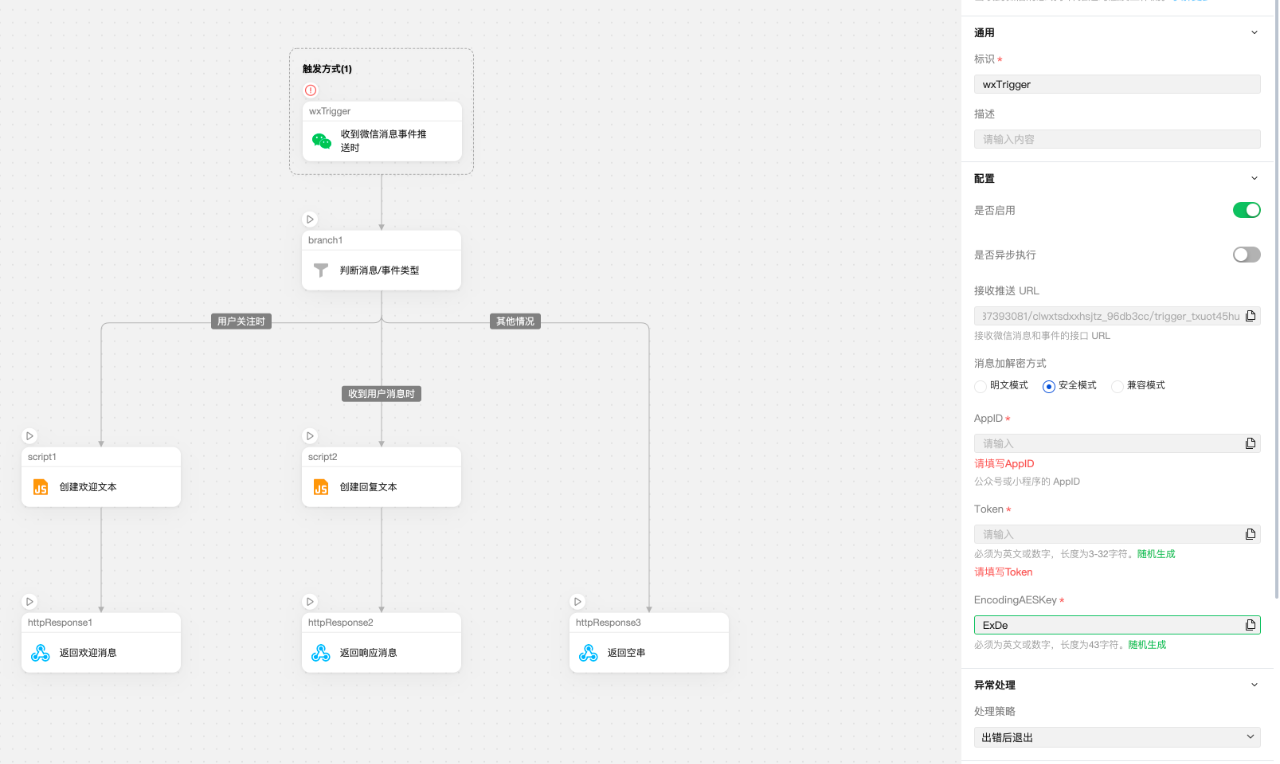 我在配置微信小程序客服的消息推送,想着自己处理用户消息然后发给用户。