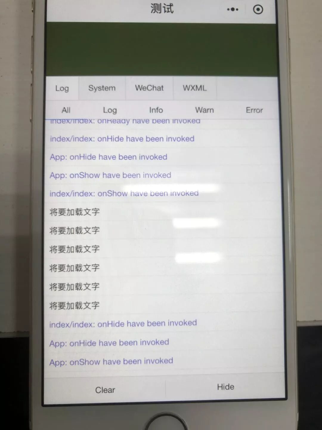 bug流程: 没出现文字 点击测试按钮多次调用仍然没出现