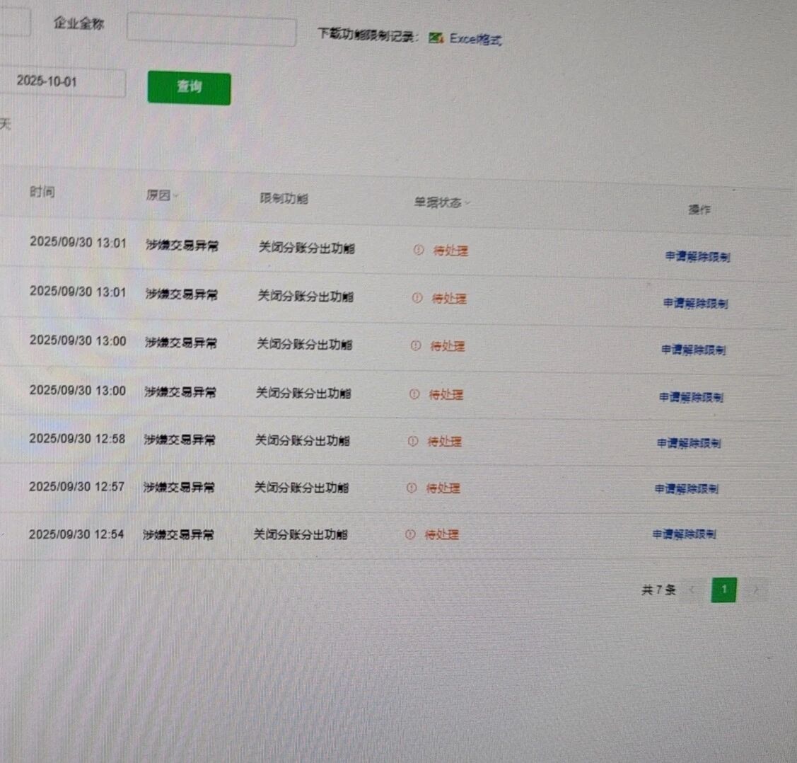 为什么我的商户统一被限制分账,也没有使用分账功能目前也没有投诉
