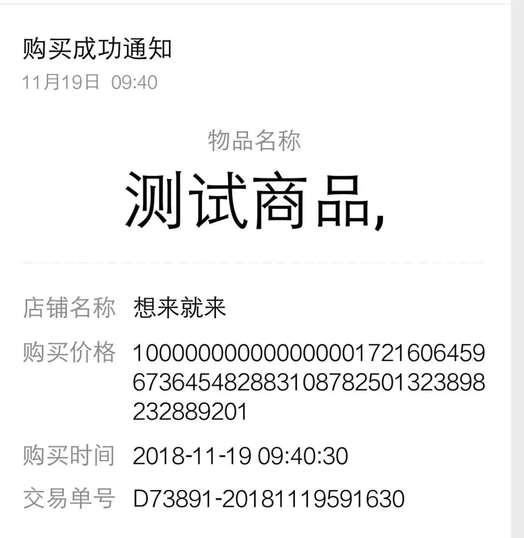 支付成功后,给用户推送服务通知,配置了模板以后,手机端收到消息,其他各项正常,但是商品价格一项并没有显示价格,而是显示了几十位的数字