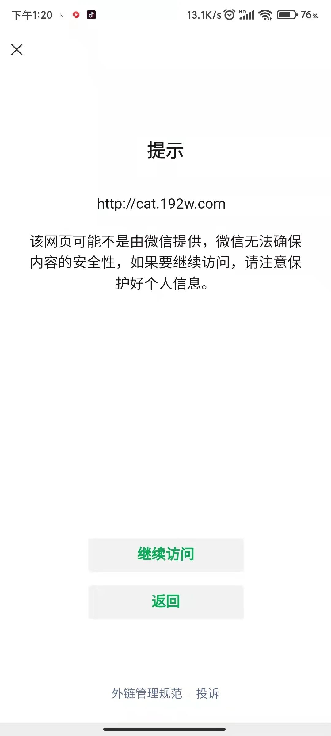 使用微信PC端,微信开发工具都可以正常访问,但是用手机访问就会出现这样的外部链接