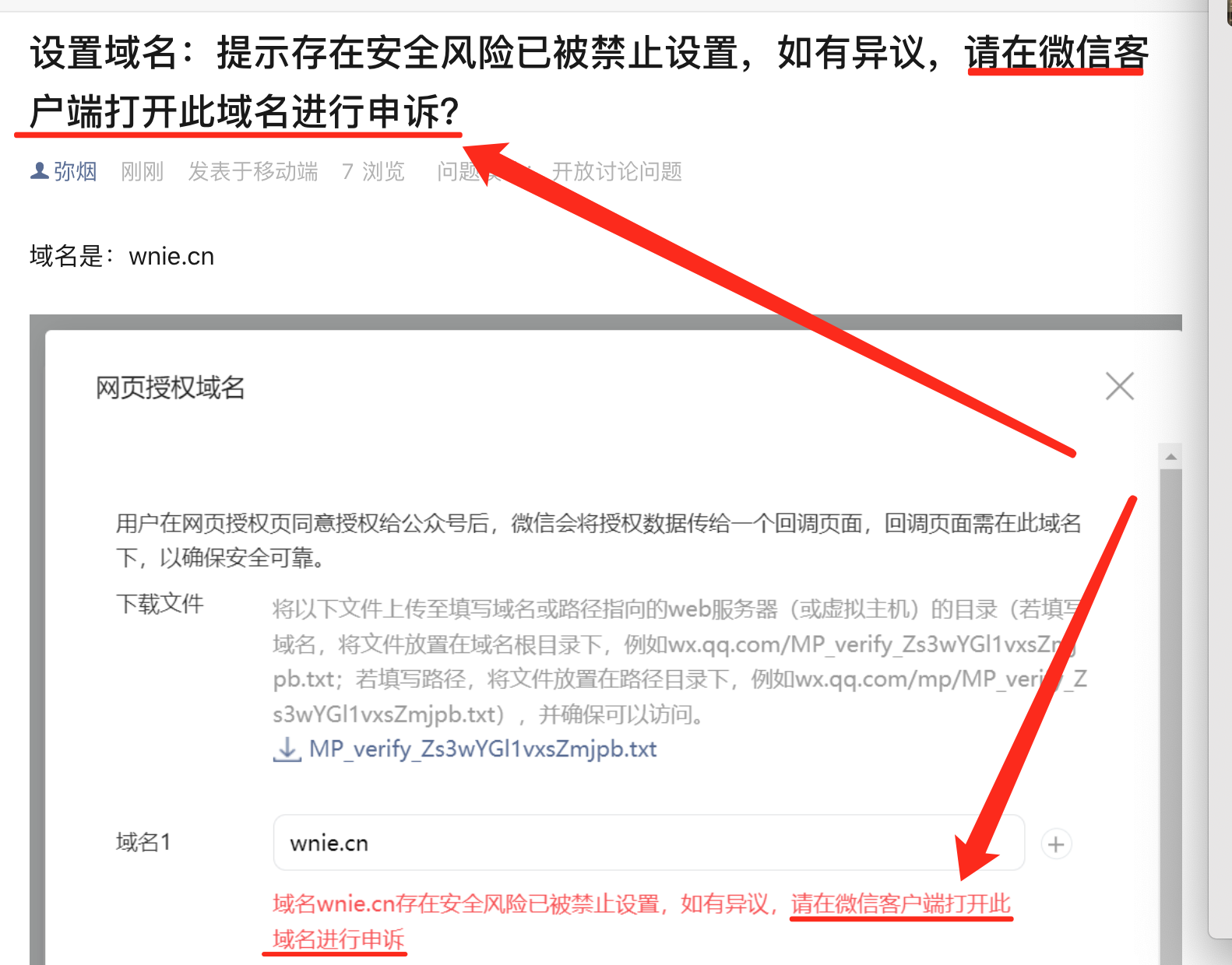 1、微信端访问上诉域名,申请恢复访问,没通过后