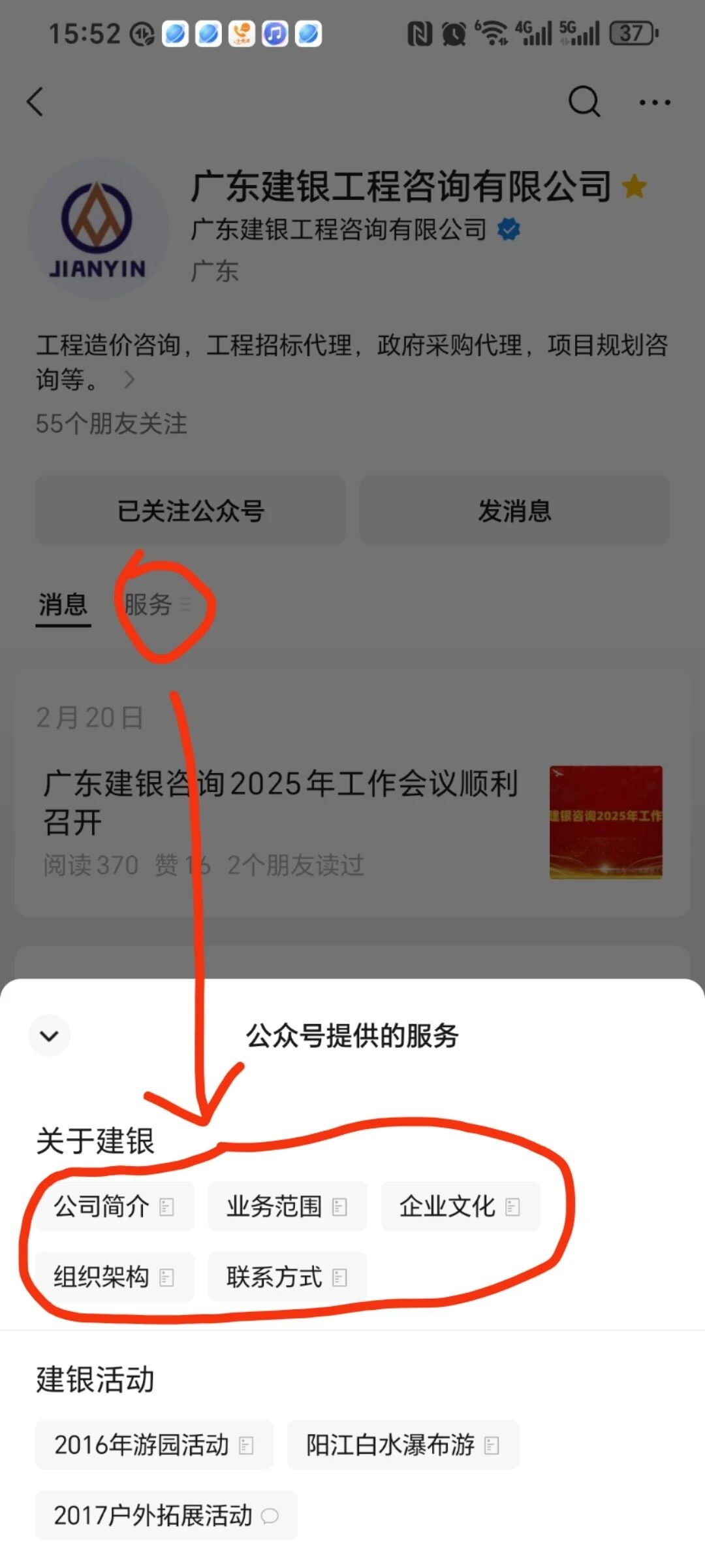 就是手机微信公众号对应的“服务”下的红圈里这几个关于公司的内容,怎么改?