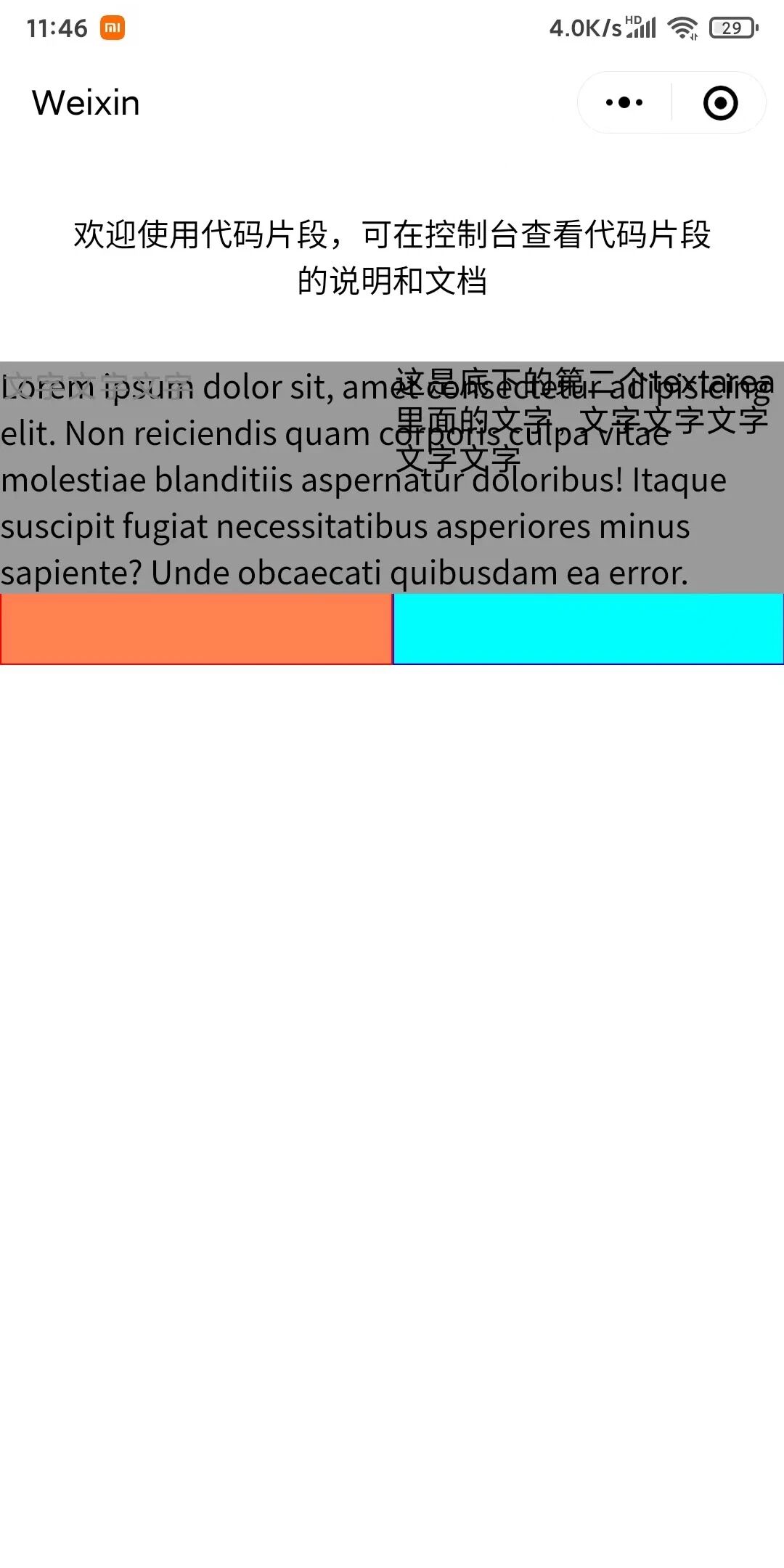页面内容:灰色部分为顶层文字部分,绝对定位,并设置z-index值100,底下为两个textarea,一个设置placeholder,一个有文字。结果效果如图