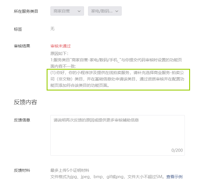 你好,如小程序不涉及拍卖服务,建议修改服务页面展示内容明确为商品销售页面