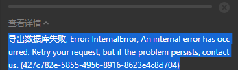 导出数据库失败, Error: InternalError, An internal error has occurred. Retry your request, but if the problem persists, contact us. (427c782e-5855-4956-8916-8623e4c8d704)