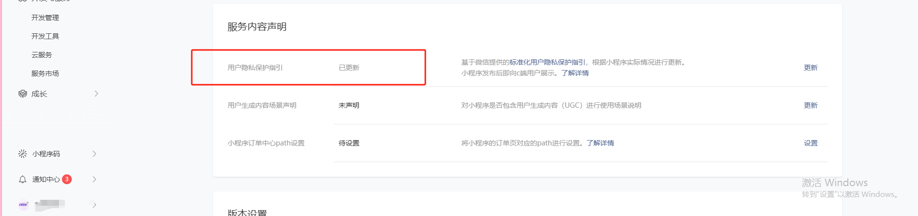 你好,请先检查是否更新或完善小程序《用户隐私保护指引》。可前往“https://mp.weixin.qq.com/登录你的小程序-设置-服务内容声明模块”或代码提审时完善《用户隐私保护指引》。若于到期未完善,将回收小程序隐私接口调用权限,建议你尽快完善小程序得《用户隐私保护指引》。可参考:https://developers.weixin.qq.com/community/develop/doc/00062a6d514c88baacdf52e8a56009