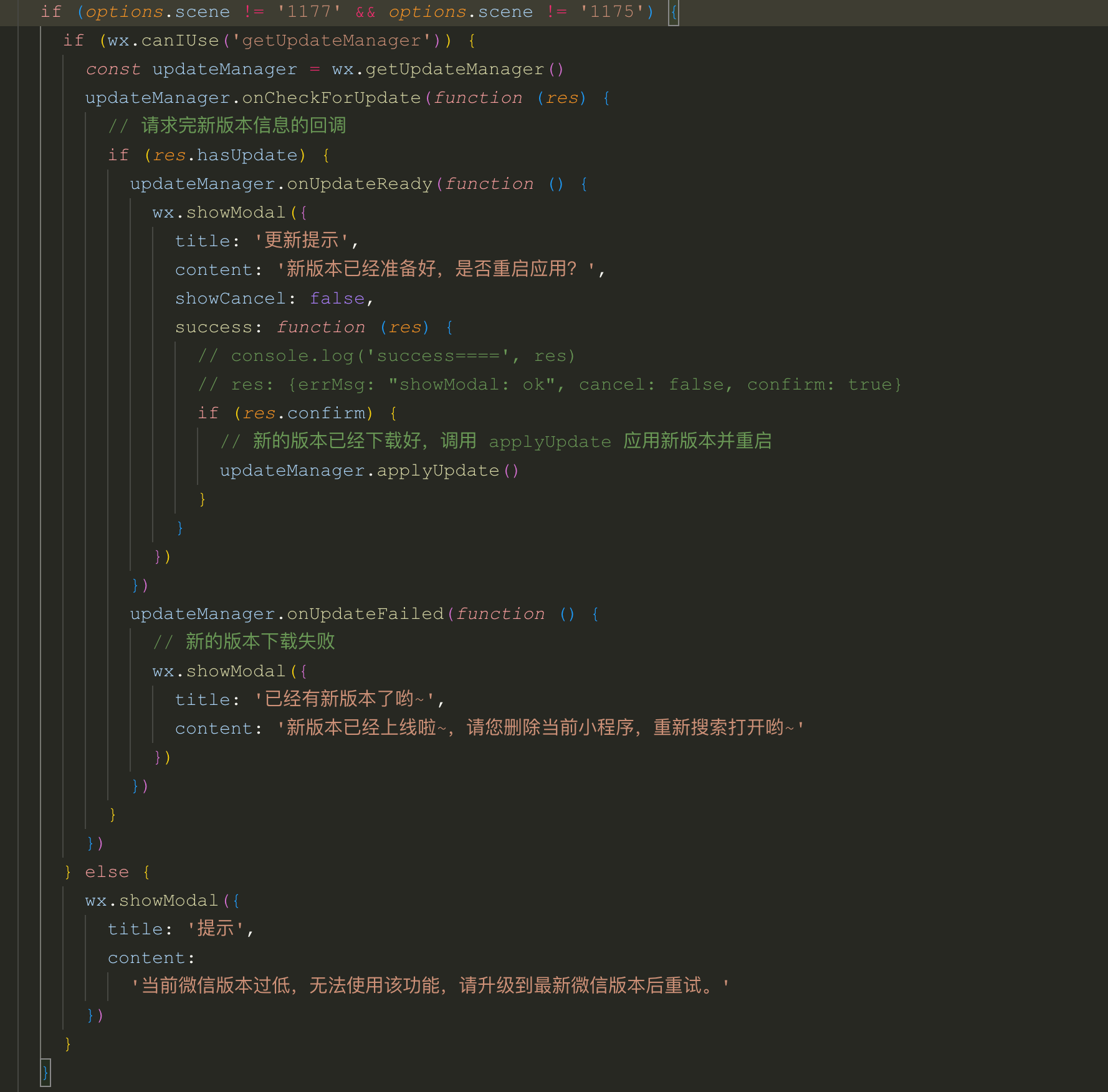 下图为入口文件版本更新监听以及弹窗
