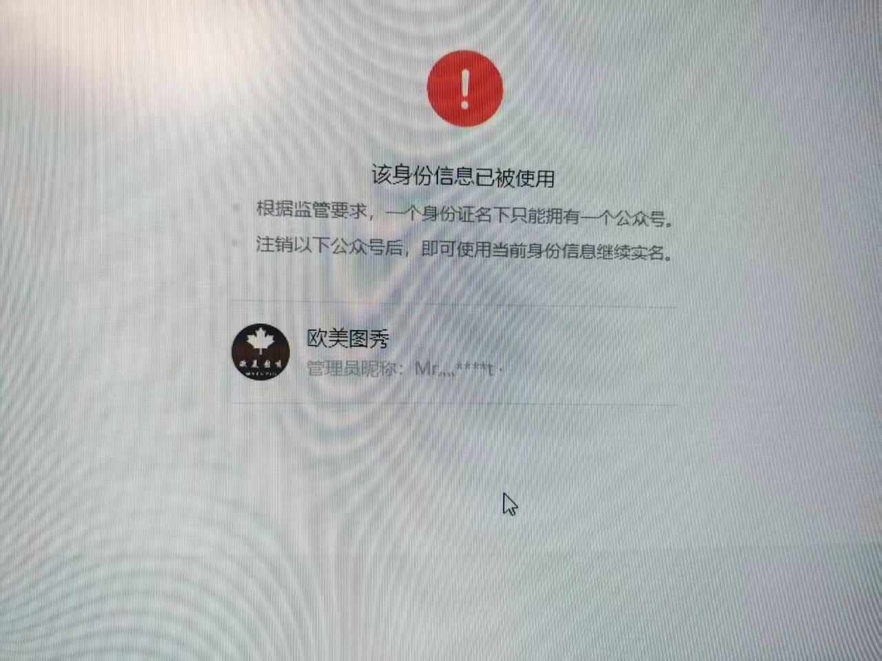 公众号注册完,实名认证时显示该身份证被占用了 怎么办,我的身份证占用的公众号不是我的,是别人那我的身份证注册了 自己的公众号,现在无法解绑身份证,我也无法实名认证我的公众号 (微信公众号服务平台也无法解绑 无法查到)