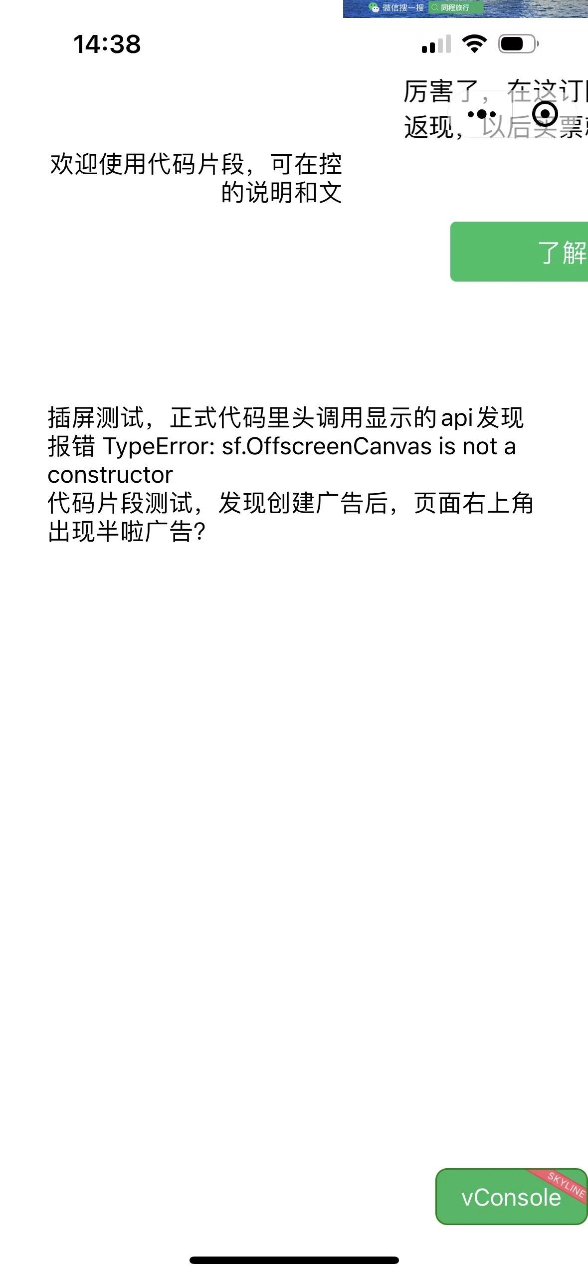 2.只创建广告,不展示调用,真机会在右上角出现半边广告