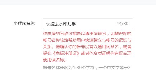 你好,我们的微信小程序名称涉及通用词语,如何处理。