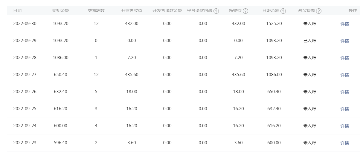这边看虚拟支付2.0后台,资金管理中,发现九月份有些天显示资金已入账,但也有些天显示资金未入账。而且未入账的都是有充值的天数。