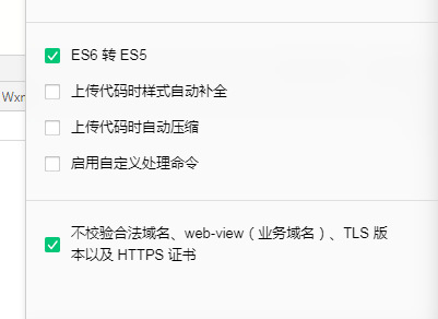 前提是我已经勾选不校验合法域名、web-view(业务域名)、TLS 版本以及 HTTPS 证书