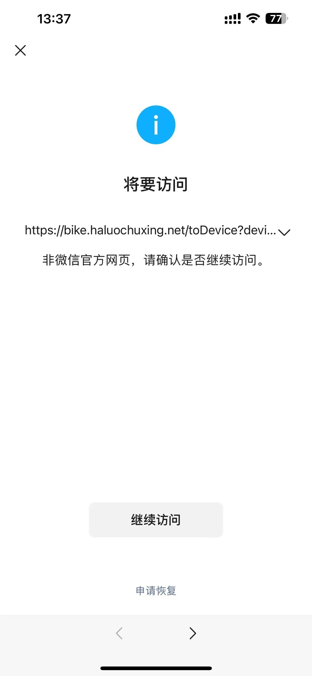 https://bike.haluochuxing.net/toDevice?device_id= 这是我们的二维码跳转链接规则,但是扫码页面是404