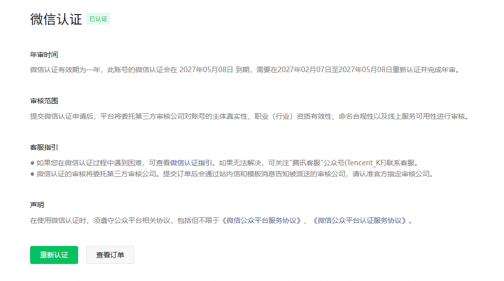 可能支付微信认证费用的账号和你当前截图的不是一个账号。