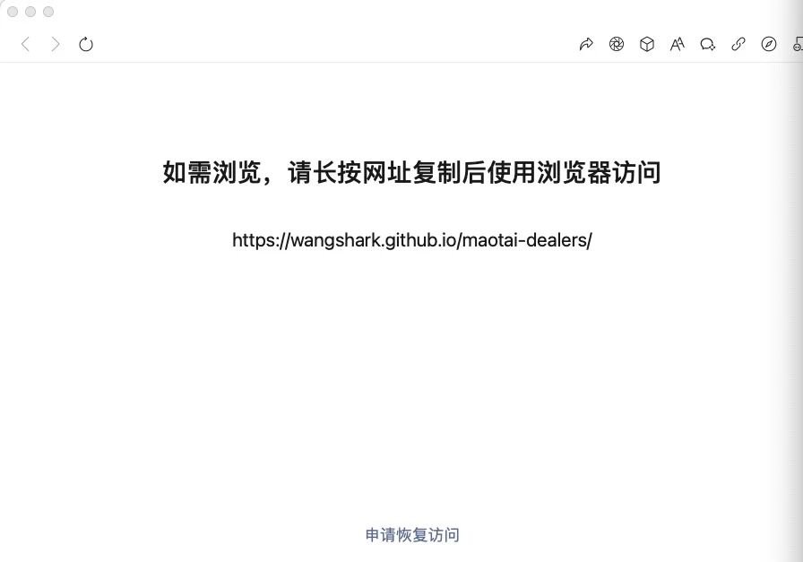 请问,微信扫码和识别二维码不能直接跳转链接网站 https://wangshark.github.io/maotal-dealers/,该链接网站用于本地行业信息交流使用,无诱导无违规情况,请问这种情况需要怎么处理,盼回复!