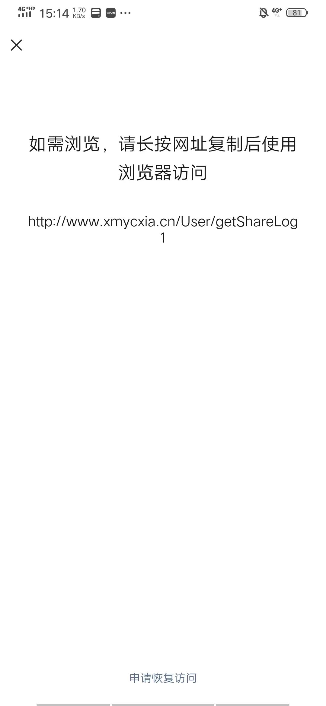 你好,经审核,域名xmycxia.cn 下的链接【http://www.xmycxia.cn/share/newdetail/article_id/1031845/pid/798906,http://qkxrm.xmycxia.cn/share/newdetail/article_id/1032160/pid/815829】等大量链接的内容存在违反《微信外部链接内容管理规范》的第2.9条“垃圾广告类内容”,请排查并把域名下相关违规内容修改后进行申诉;申诉方式可点击停止访问页底部入口进行操作,我们会在三个工作日处理,请耐心等待。详细规则请参考《微信外部链接内容管理规范》http://weixin.qq.com/cgi-bin/readtemplate?t=weixin_external_links_content_management_specification