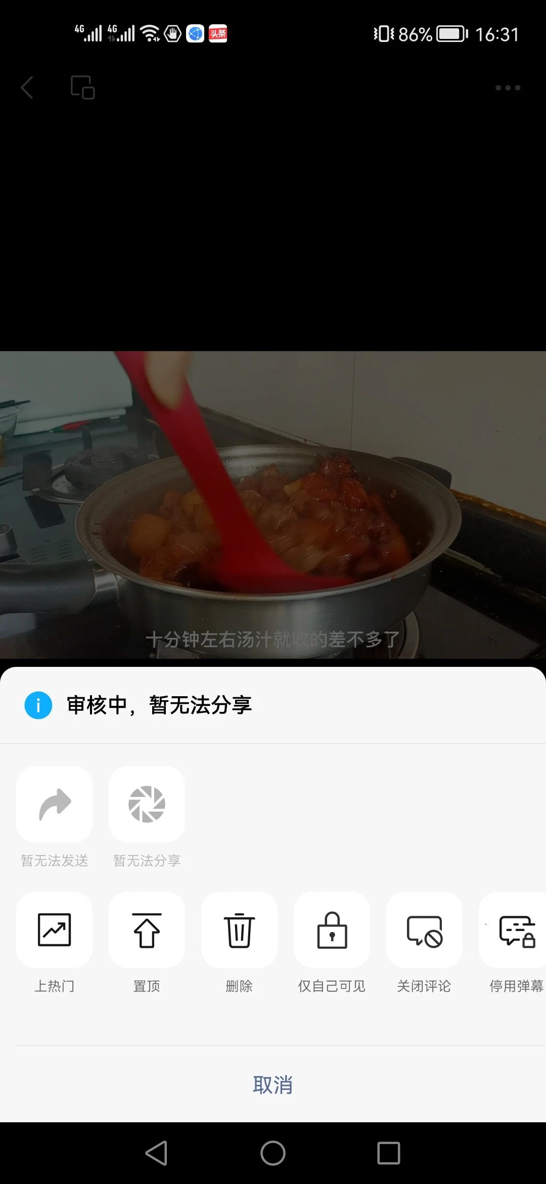 5. 问题描述:11.28 从13:59开始发布的几条视频都显示“审核中,暂无法分享”,账号无私密,均为原促。