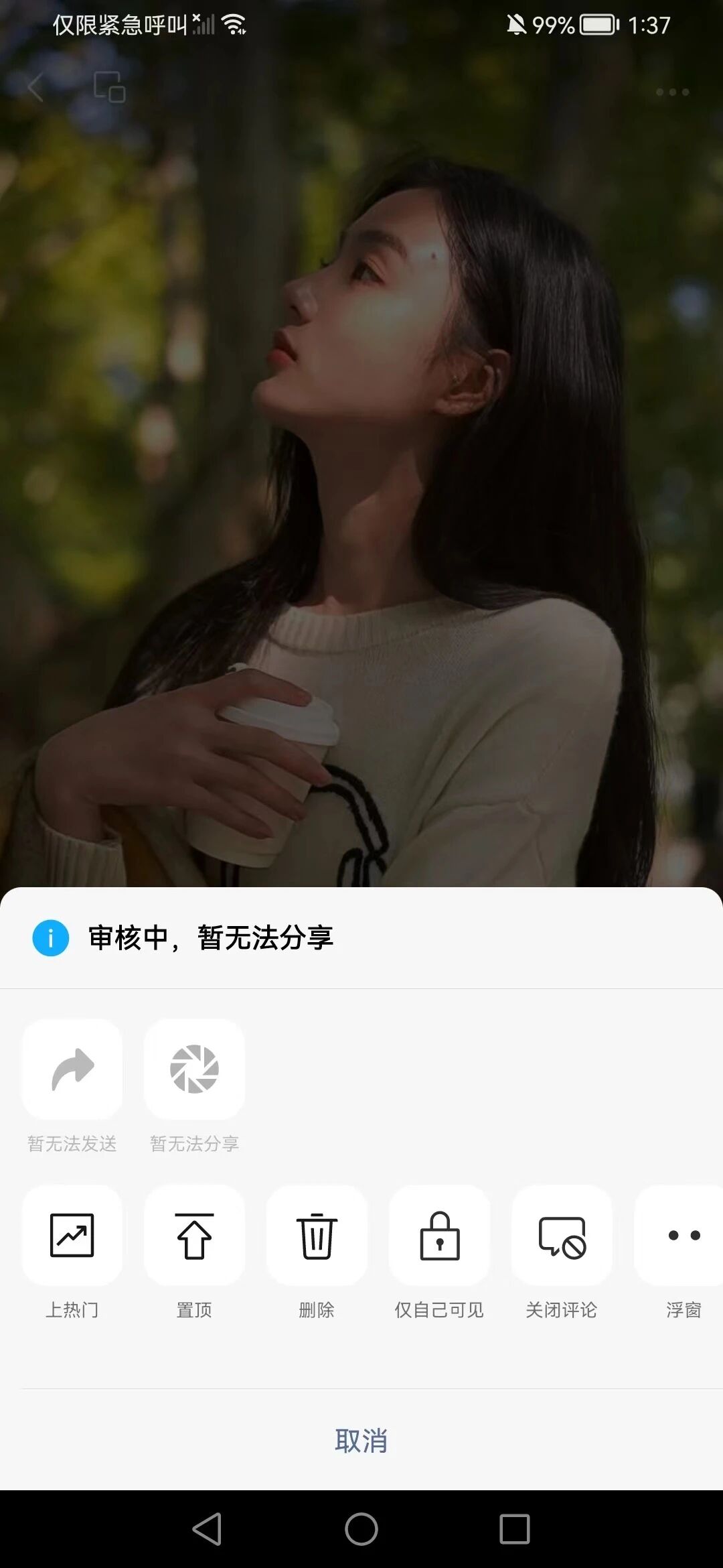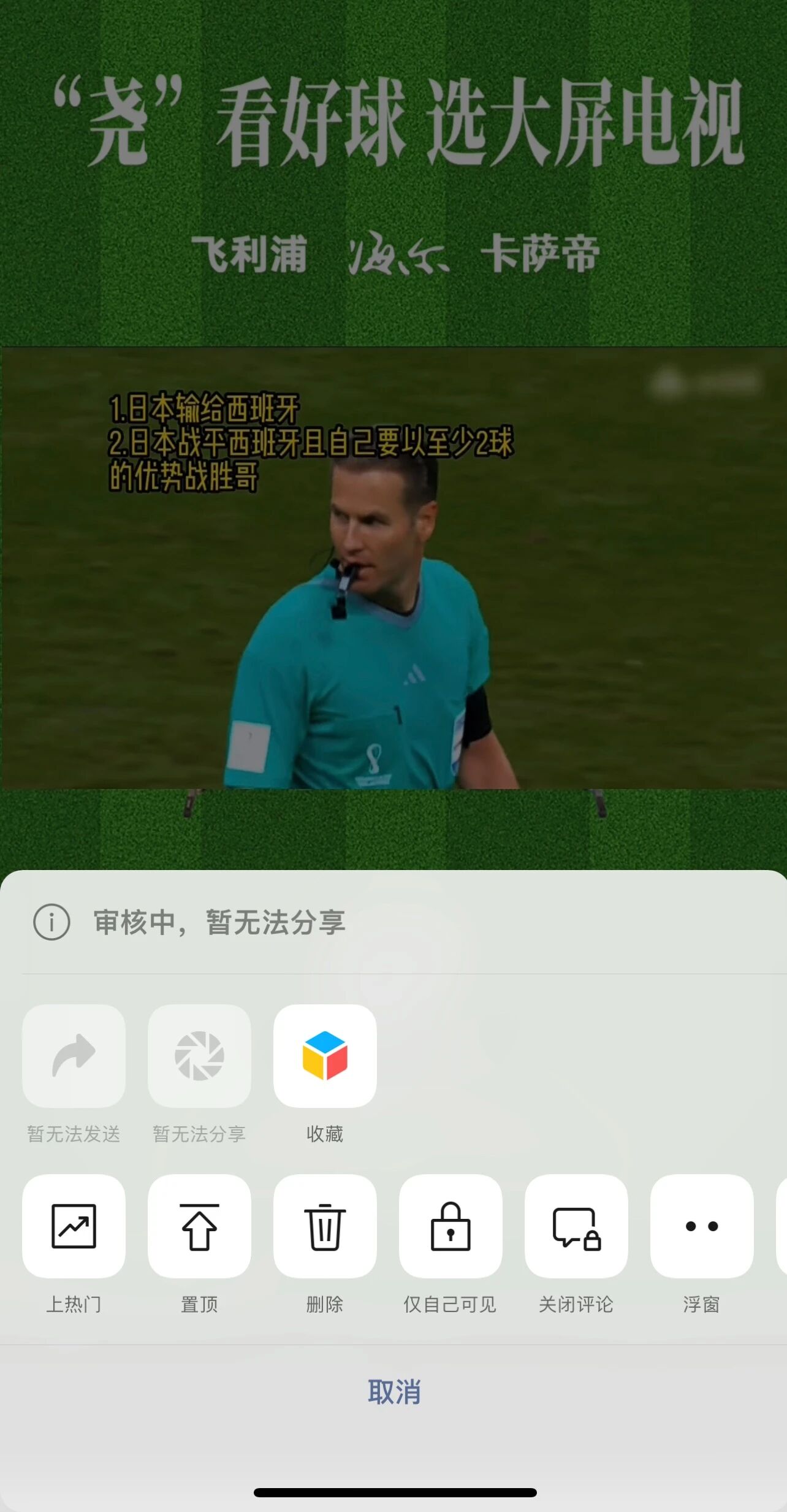 5. 问题描述:2022年11月28日中午11点50以后及11月29日上午10点半发布的视频都在审核当中,无法分享,求助