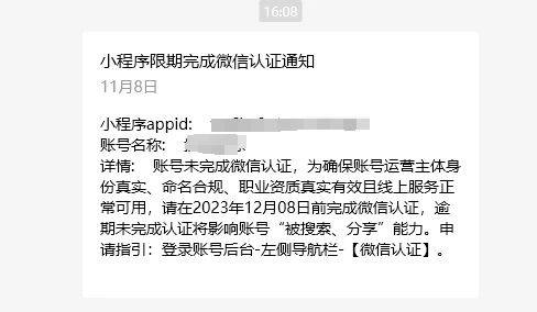 今天突然收到一条信息,个人名下的一个小程序要求完成微信认证,这个认证貌似是要收费300吧?