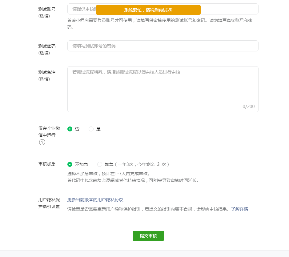 1、请提供下小程序appid、系统提示繁忙发生的时间点(注:建议准确到几月几号几点几分)