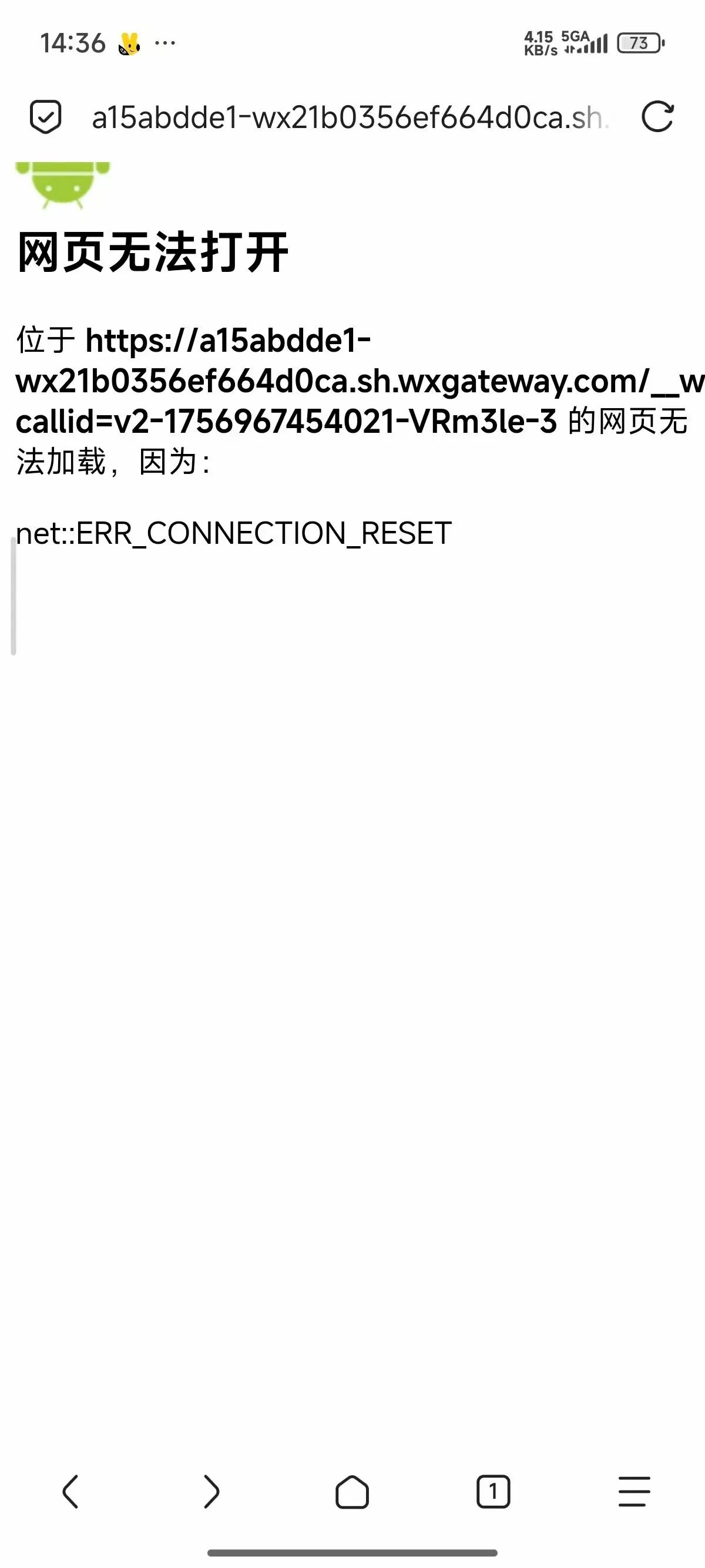 2025-09-04 14:30:54.379 [E][HttpClientForWXCloudSDK.m,48,-[HttpClientForWXCloudSDK fetchCore:headers:body:completion:]_block_invoke] SDK gateway fetchCore error in NSURLSessionDataTask completionHanlder: 发生了SSL错误,无法建立与该服务器的安全连接。 , url: https://a15abdde1-wx21b0356ef664d0ca.sh.wxgateway.com/__wx__/smoperatewxdata?callid=v2-1756967454021-qETZ4sf0