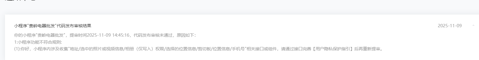 提交版本审核的时候,从这个地方进入更新一下用户隐私保护协议,然后在提交审核