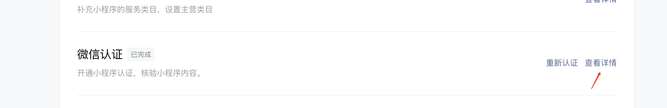 微信小程序管理后台首页里 微信认证点击查看详情, 报系统错误