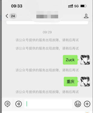 公众号14日开始出现部分用户被动回复出现“该公众号提供的服务出现故障,请稍后再试”的提示,但是大部分用户使用正常(如上图)。咨询客服回复说是第三方授权,关闭后仍会出现问题。同公司开发人员联调时发现服务器/防火墙均未收到异常用户的请求信息,但是正常用户的请求都有记录到。综合考虑判断可能原因为微信回调服务器未将异常用户请求发送至公司的服务器,烦请协助排查。